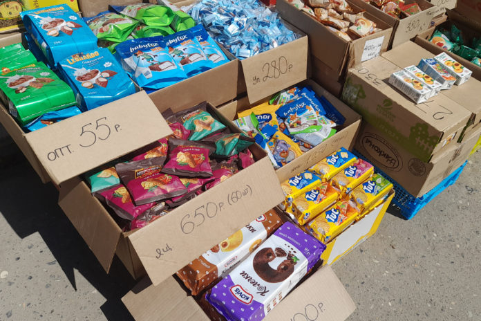 Ближе к празднованию повсюду в атмосфере витал привычный вопрос: что раздавать? Его можно было услышать на рынках, в маршрутках, в родительском школьном и детсадиковском чатах. Окончательно принять решение помогали все те же продавцы на рынке, а точнее сказать цены, которые они вывешивали на коробках со сладостями и детскими лакомствами. На Цумадинском рынке, куда привычно едет отовариться часть горожан в преддверье праздника, в начале недели ажиотажа не наблюдалось. Многие побывали здесь заранее, в выходные дни, закупая коробочками ходовые сладости. Но и в этот день людей было достаточно. Мимо пронесли несколько коробочек с «Баунти», «Обыкновенным чудом» и «Чоко-паем». Торговые ряды с носками были облеплены покупателями, выторговывающими этот необходимый в быту и на праздники атрибут одежды. «А они быстро не рвутся? А чем они отличаются?» – озабоченно выспрашивали женщины, держа в руках носки разных фирм. «Да они одинаковые, просто цены разные», – отмахивалась продавщица, которой было все равно, что возьмут, ведь все равно возьмут! Цены за небольшую упаковку были сравнительно «неопасные» – 350-400 рублей. Чуть подальше торговали коробками со сладостями: от изобилия ярких упаковок рябило в глазах, продавцы, чтобы не тратить время на вопросы-ответы, быстро расставляли куски картона, где указывались оптовая, розничная цены и цена за коробку. Отвечая на мой вопрос, что в основном берут, одна из продавщиц сообщила, что – вафельные десерты, мини-батончики «Сникерс», а еще «35» и «Трио».