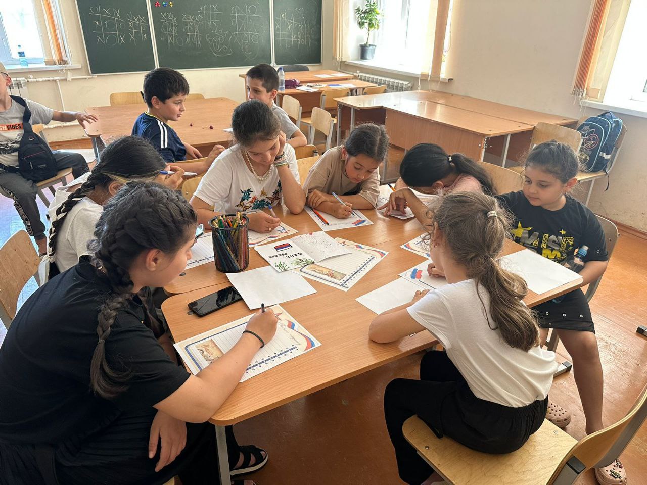 В рамках празднования Дня России ребята написали теплые слова поддержки солдатам, оформили свои конверты яркими рисунками.