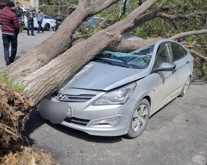 Дерево упало на автомобиль в Махачкале в результате сильного ветра, сообщает пресс-служба администрации Советского района.
