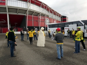 Группу дагестанских болельщиков из 25 человек составили представители фанатского объединения «Дикая дивизия» – счастливые обладатели Шенгенской визы. Идентифицированы они были моментально. Офицер паспортного контроля со знанием дела произнес: «О, фэнс «Анжи» Макачикаля!!! Гущ Хиддинк…», давая понять, что он в курсе событий, и без проволочек выполнил свою работу.