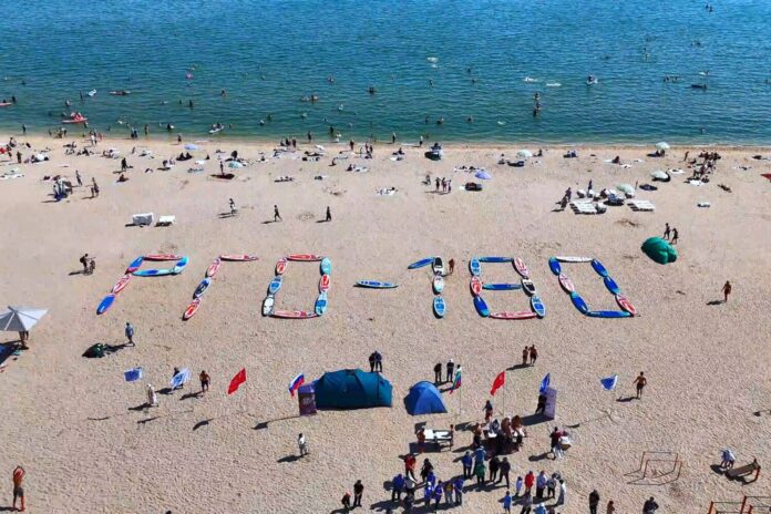 Ярким завершением мероприятия стал флешмоб, когда с помощью сапбордов на песке была составлена надпись «РГО – 180 лет». Участники флешмоба выстроились вдоль надписи, и всю композицию сверху отснял квадрокоптер.