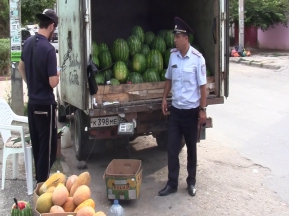 Сотрудники ГАИ пресекают незаконную торговлю арбузами