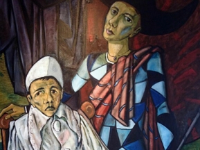 Отдельная часть – мотивы венецианского карнавала. На холсте оживают грустные Арлекин и Пьеро, которых тяготят карнавальные костюмы, а всё окружающее кажется фарсом. Они сидят рядом, совершенно уставшие, и будто мечтают прекратить наскучившую комедию.