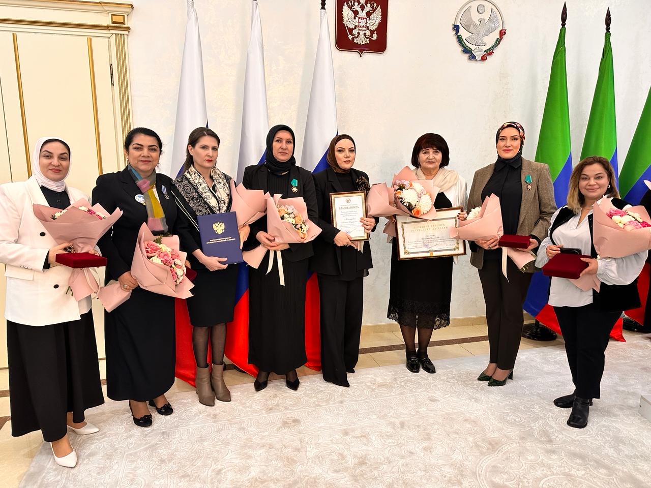 Также Глава присвоил звания «Заслуженный деятель науки РД», «Заслуженный артист РД», «Заслуженный врач РД», «Заслуженный работник государственной службы РД» женщинам, работающим в профильных структурах.