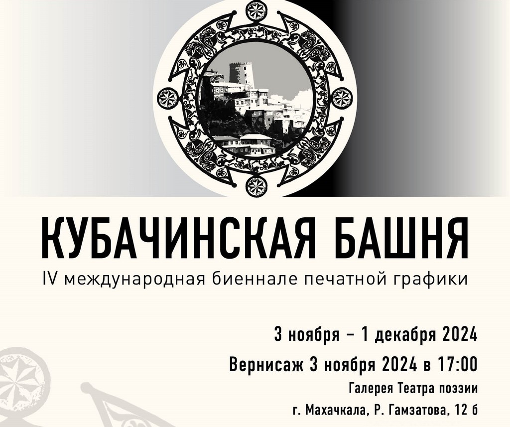 В «Ночь искусств», 3 ноября в галерее Театра поэзии в столице Дагестане откроется выставка победителей, лауреатов и дипломантов IV Международной биеннале печатной графики «Кубачинская башня».