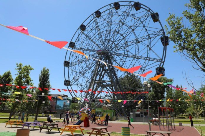 Сегодня, 12 июня, в парке им. Ленинского Комсомола в Махачкале состоялось торжественное открытие аттракциона «Колесо обозрения», высота которого составляет 50 метров.