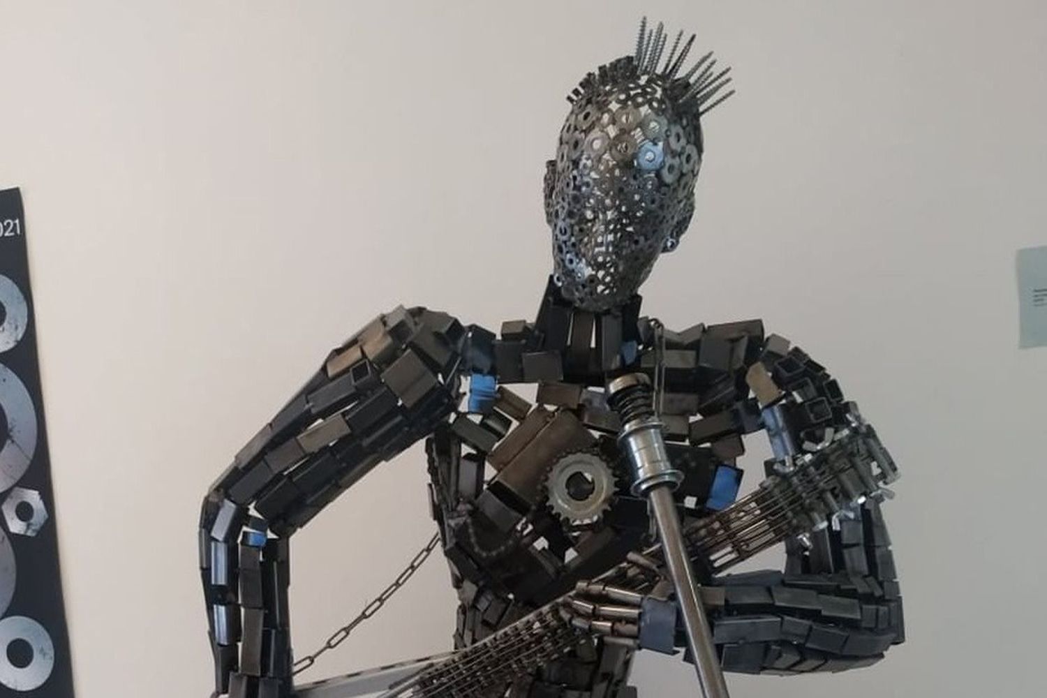 На выставке представлены как скульптуры 2-метровых музыкантов и роботов, так и крошечные самолеты, зверюшки и т.п. В основном Нурмагомеда тянет создавать именно скульптуры музыкантов.