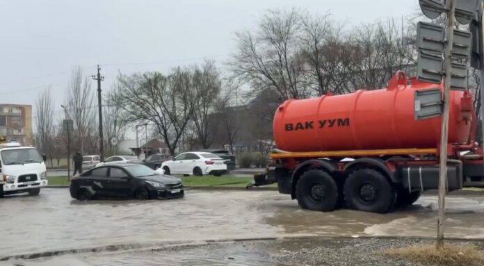 В Махачкале специализированные службы ведут откачку воды с применением вакуумной техники на улице Хаджи Булача и других затопленных участках. Работы проводятся в круглосуточном режиме.