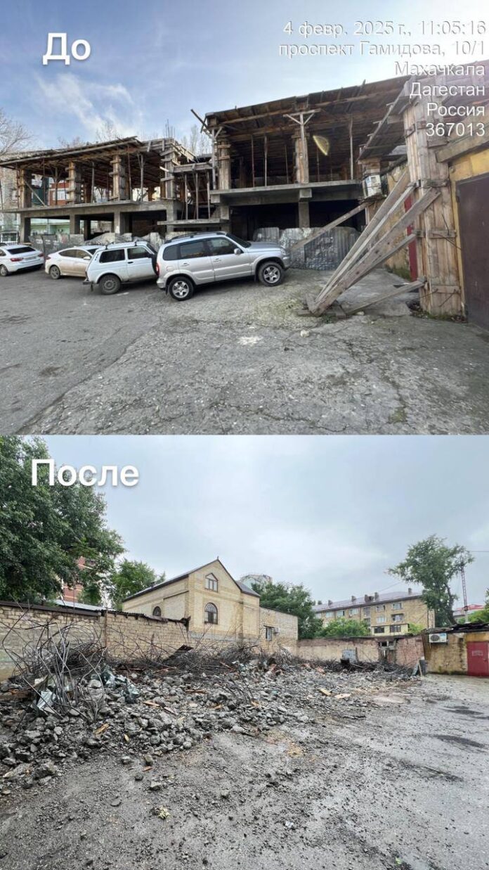 В Махачкале снесли незаконную постройку на улице Николаева, 49а. Об этом сообщил мэр Махачкалы Юсуп Умавов в своем Telegram-канале.