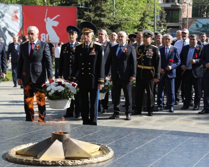 Торжественная церемония возложения цветов состоялась сегодня, 9 мая, в Махачкале у памятника Воину-освободителю, приуроченная ко Дню Победы в Великой Отечественной войне.