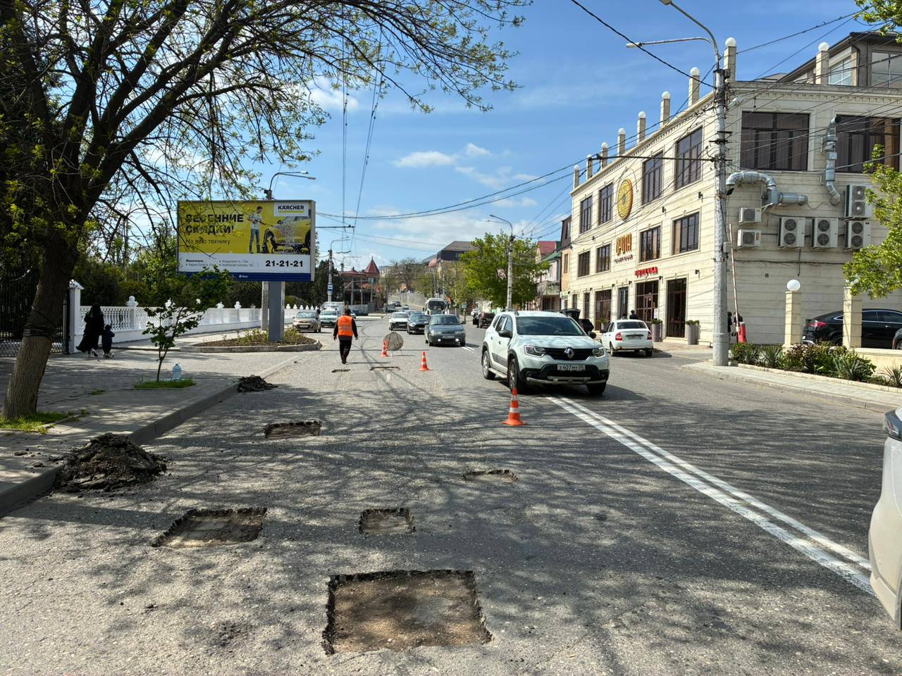 В Махачкале продолжается борьба с ямами на дорогах. На сегодняшний день ремонтные бригады задействованы на пяти улицах города. Специалисты МБУ «ЦОДД» уже выполнили подготовительные работы по основанию дорожного покрытия на проспекте Петра I, а также на улицах Гамидова, Гагарина, М. Гаджиева и Пушкина. Вторую половину дня они посвятят укладке асфальтобетона.