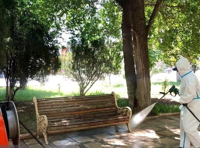 Дезобработка контактных поверхностей продолжается в общественных пространствах Махачкалы по решению городского штаба по недопущению распространения коронавирусной инфекции, сообщили в пресс-службе администрации города.
