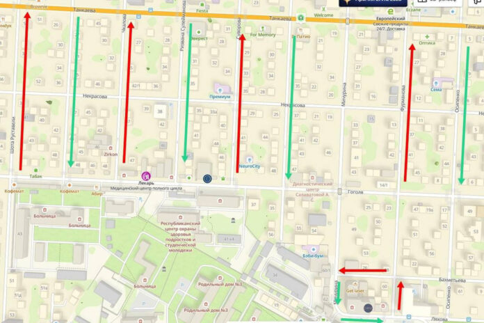 На участках улиц Шота Руставели, Чкалова, Суворова и Фурманова одностороннее движение будет организовано в направлении от улицы Гоголя до улицы Танкаева.