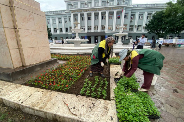 В столице Дагестана активными темпами проводится озеленение городских территорий. Красочными коврами ложатся посаженные цветы и декоративные растения.