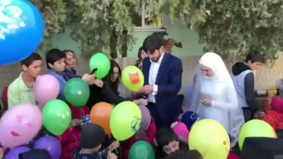 Молодожены Шамиль и Мадина в день своей свадьбы устроили праздник для воспитанников детского дома.