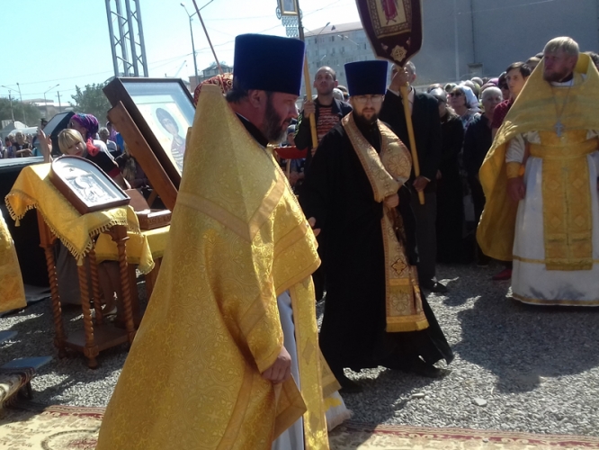 Служба прошла на месте воссоздания кафедрального собора на проспекте Петра I, где сегодня возведен поклонный крест. В литургии приняли участие епископ Тихорецкий и Кореновский Стефан, духовенство Ставропольской епархии и Махачкалинской, хор Ставропольской семинарии, православные прихожане. Провел Божественную литургию епископ Махачкалинский и Грозненский Варлаам. По окончании службы он обратился к присутствующим.
