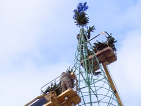 В настоящее время специалистами при помощи спецтехники уже полностью собран каркас и крепятся на него ветки. После этого елку украсят светодиодные гирлянды и игрушки, бусы и нити разных видов, шары и звёзды. Монтаж конструкции будет завершен в ближайшие дни, что позволит создать новогоднюю атмосферу.
