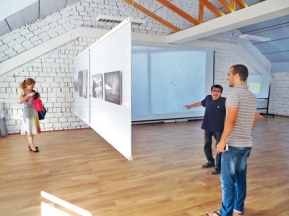 Чем собственно он озабочен, когда хватается за камеру, чтоб щелкнуть и постараться дать этот кадр публике? Пройдя визуальный ряд, поймала себя на мысли, что под щелчок попадает все, что вокруг происходит и движется. Погода, природа, девочка. Люди, камни, пространство. Капля, дрожащая на экране. Все, что может быть и обыденно, и может быть кому-то не на заметку, а интересно фотохудожнику, который приглашает окинуть мир его взглядом. И зацепить в этом мире несущественно существенные вещи, фрагментиками мелькавшие на экране телевизора, пойманные в момент созерцания или быстрого перемещения из пункта А в пункт Б. Как-то непохоже было, что взял художник фотоаппарат в один из солнечных дней и сказал себе: «Айда-ка, пойду я сегодня соберу себе материальчик на фотосессию, и душе приятно, и народ потешить». Остановился где-то и произнес заветную во все времена фразу «А сейчас смотрите сюда, отсюда вылетит птичка». И объект фотогафирования покорно замер… А скорее всего спонтанно, шел мимо, остановился, и непроизвольно рука потянулась за аппаратом, производящим документ времени. Щелчок – готово. Хотите ругайте, хотите нет, но показалось, что все «запечатанное» было делом рук одного человека. Совершенно случайно увидела плоские нарезки фамилий известных и неизвестных мне авторов. Поймала себя на мысли, что опять оплошала. Вот всегда так, думаешь одно, а получается несостыковочка. И корить себя некому. Остается только наблюдать, как движутся массы человеческие между экспо-ширмами и наставляют друг на друга фотоаппараты. «Нет ты не там, а сюда встань, вот так повернись, на работу смотри, на меня смотри». Получается такая странная проекция. Фотография на фоне фотографии.