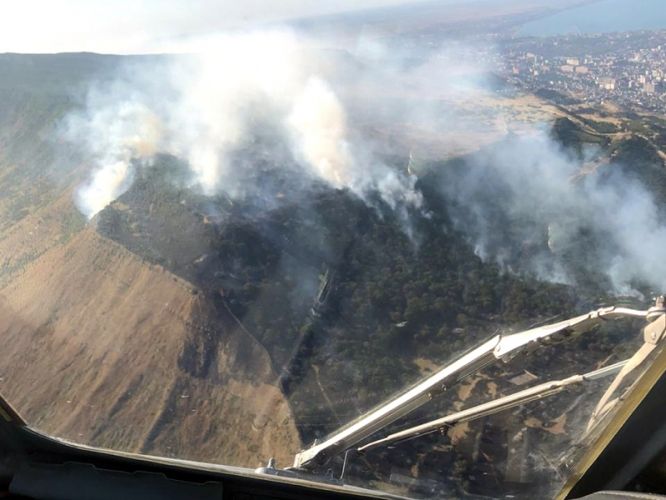 Несколько тонн воды были сброшены со специально присланного из Ростова-на-Дону самолета Б-200. Горожане могли наблюдать, как белый лайнер приводнился на морскую гладь и через некоторое время полетел в сторону дымящегося склона Тарки-Тау. Кружил над пожарами и вертолет МЧС МИ-8, также тушивший морской водой пламя на мусорном полигоне и склоне горы.