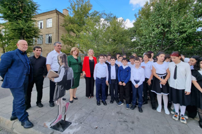 При содействии депутатов города Махачкалы начаты работы по установке макетов «шагающих школьников» (мальчик и девочка) вблизи образовательных учреждений города Махачкалы.