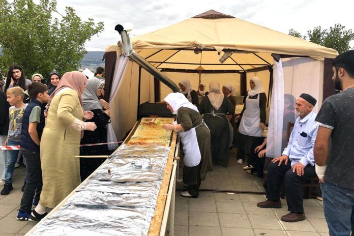 На выходе мы получили любимое дагестанцами блюдо длиной 17,4 метра. Его удалось разделить на 2000 ломтиков и раздать всем участникам мероприятия.