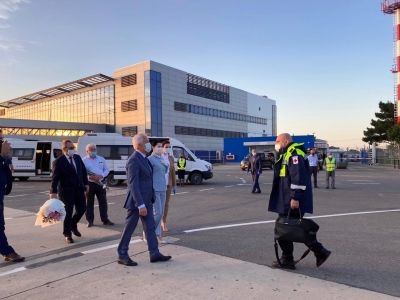 Глава Дагестана Владимир Васильев встретил в Аэропорту Махачкалы главного врача подмосковного медицинского комплекса в Коммунарке Дениса Проценко.