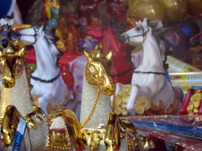 Помимо всего вышеперечисленного, покупателей ожидали самые различные подарки и сувениры: от разнообразных ароматных свечей, музыкальных шкатулок, новогодних открыток, китайских прозрачных шариков со снегопадом внутри, посуды для новогоднего стола до гирлянд и разнообразных елочных украшений от лучших мировых производителей. Но как оказалось, наиболее раскупаемыми подарками стали сувениры и статуэтки с изображением Лошади — символа Нового 2014 года.