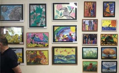Авторы работ – дети от 4 до 14 лет, представили на выставке самые разнообразные работы в различных техниках исполнения: витраж, батик, декоративная роспись на тарелках.