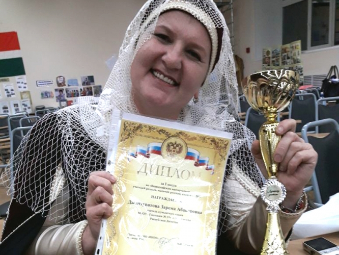 Республику Дагестан на конкурсе представляла победитель муниципального и республиканского этапов «Лучший учитель родного языка – 2017» – учитель кумыкского языка ленинкентской гимназии № 35 города Махачкалы Зарема Джанхуватова, которая по его итогам заняла первое место.