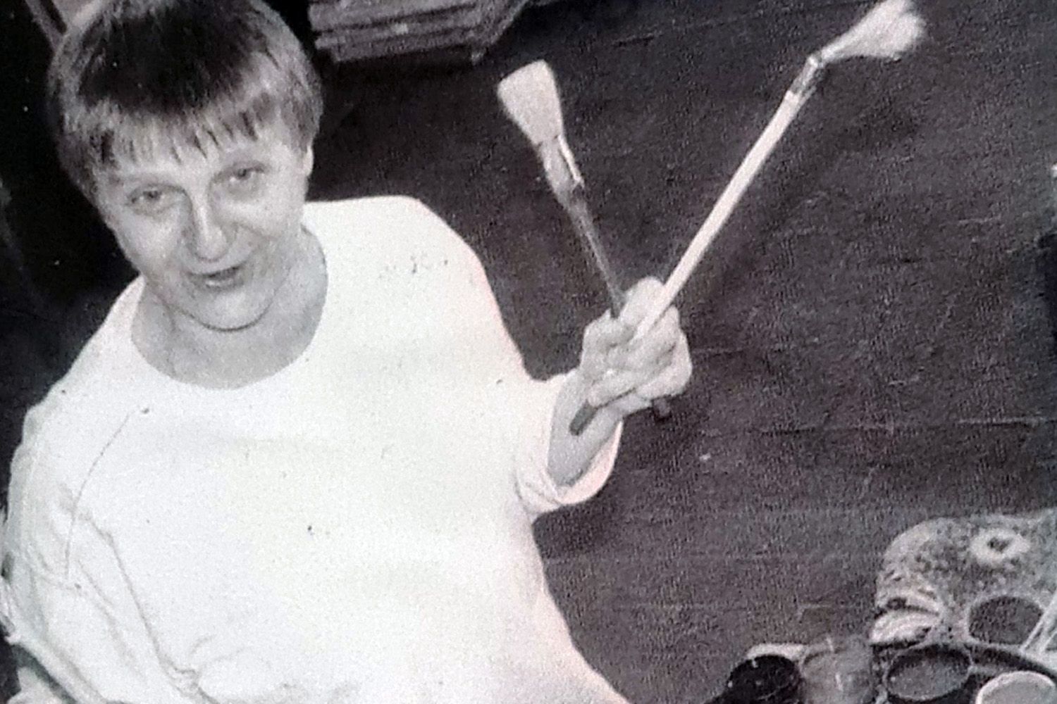 Супруг Жанны Колесниковой Юрий Августович пишет о ее творчестве: «Звук – стимул для творений, он рождает изобразительное пространство, наполняет его образным содержанием, природными и человеческими формами, читается в знаках и символах каллиграфии и изобразительного письма. Каллиграфия становится неотъемлемой частью картины видения. Письмо в творчестве Жанны Колесниковой является естественным продолжением ее глобальных странствий в эзотерическом мире вербальных и априорных явлений мировой культуры, образы которой наполняют ее фантастические картины. В этом мире нет ярких цветов и законченных событий, понятных для описания. Нет начала и конца загадочным и невыявленным персонажам, пребывающим в экспрессивных состояниях движения, расслабленной экзальтации, или застывшим в созерцательном одиночестве». Да, на представленных холстах действительно нет ярких цветов, но от этого они привлекают не меньше внимания, здесь мы видим именно графическую сторону ее творчества. Свой рисунок Жанна Колесникова начинает с линии звука, эта линия же дает и решение, дает ответ, и она проходит через весь путь в ее искусстве.