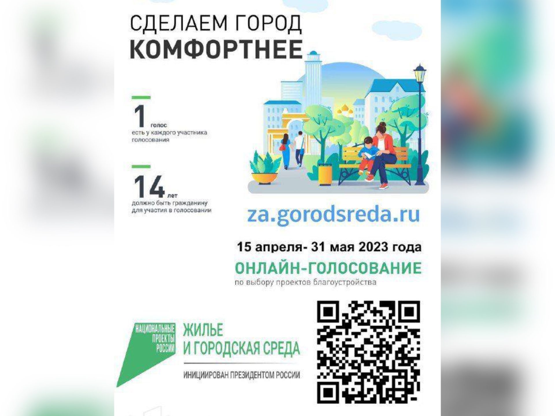 Рейтинговое голосование по отбору общественных пространств пройдёт с 15 апреля по 30 мая. Именно оно решит будущее парков и скверов, планируемых к благоустройству в 2024 году в рамках реализации проекта «Городская среда» партии «Единая Россия».